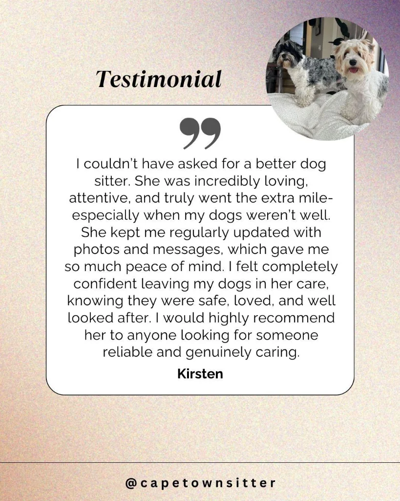 I am a passionate and reliable pet sitter and walker who prioritizes each animalβs wellbeing and happiness. I provide plenty of attention, affection, and care, and Iβve gained hands-on experience through several dog walks and many pet-sitting bookings that I genuinely enjoy. I care for every pet as if they were my own, ensuring they feel safe, loved, and comfortable.